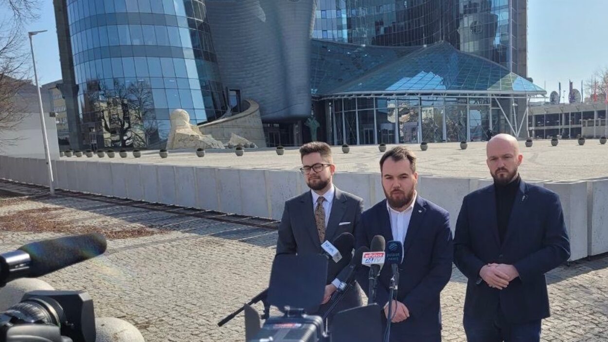 Konferencja prasowa Konfederacji pod siedzibą TVP w Warszawie